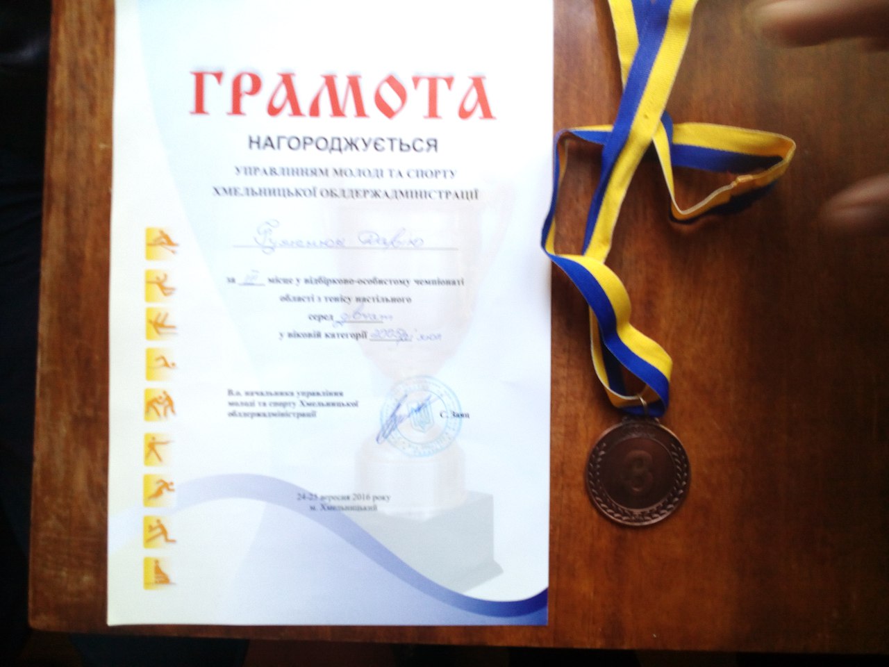 На обласних змаганнях з настільного тенісу наша учениця Гуменюк Дарія виборола 3 місце серед дівчат у віковій групі 2005 рік і молодше .