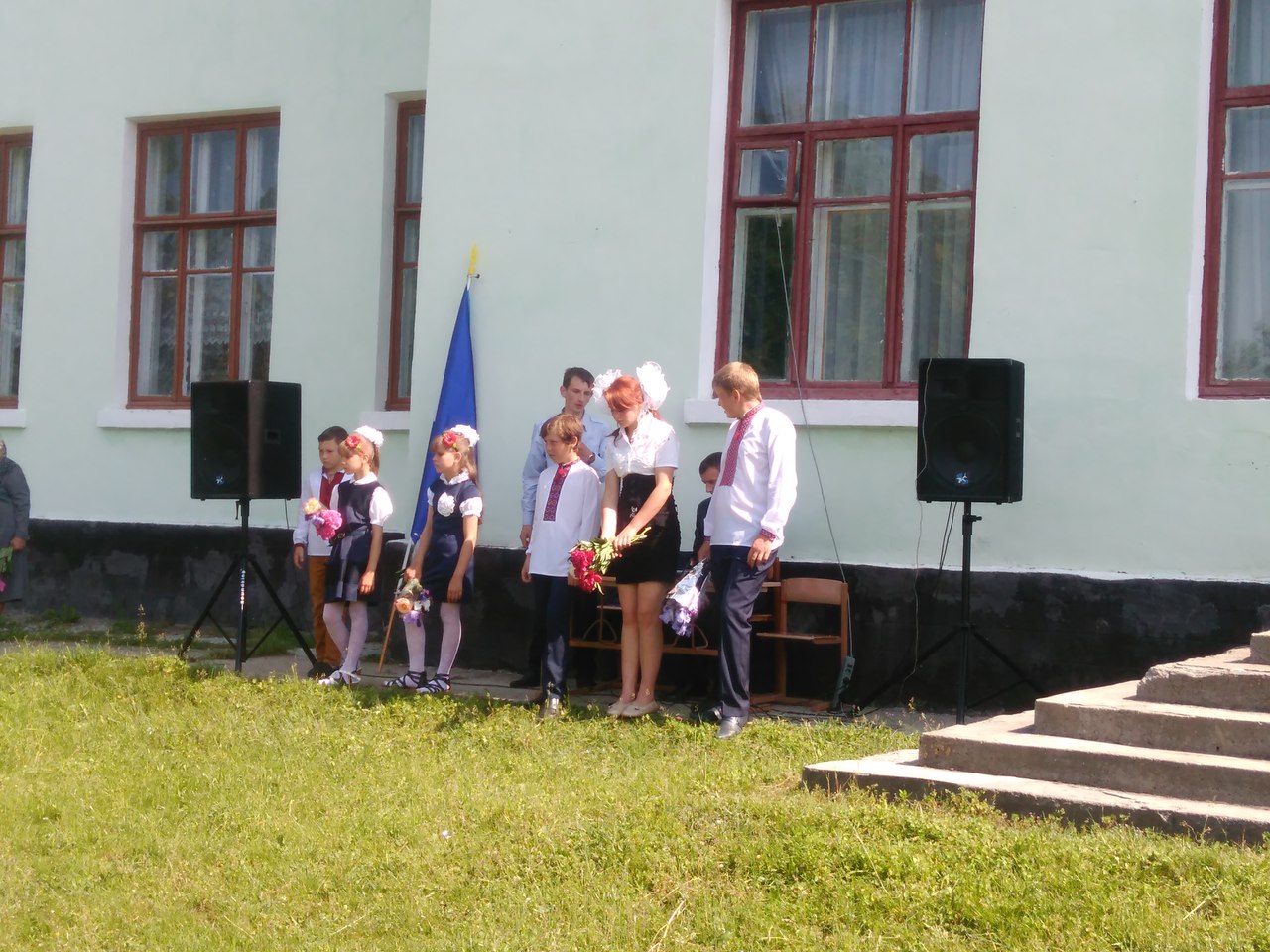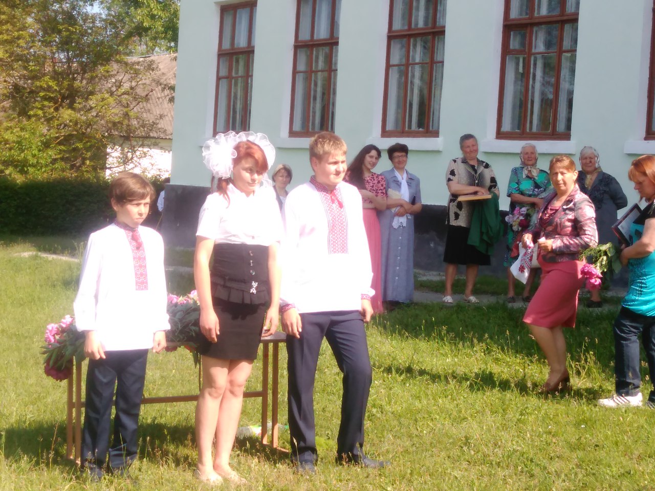 У п'ятницю 27 травня у нашій школі відбулося свято Останнього дзвінка. З вітальними словами до випускників звернулася директор школи Наконечна Юлія Олександрівна , класний керівник 9 класу Гриб Денис Миколайович, перша вчителька 9 класу Пастернак Світлана Леонідівна та класовод 4 класу Олійник Тетяна Романівна.З побажаннями щасливої долі від батьків випускників виступила Доценко С.Б. З щирими побажаннями та подарунками привітала дев"ятикласників Люба Михайлівна від ТОВ Оболонь-АГРО.
